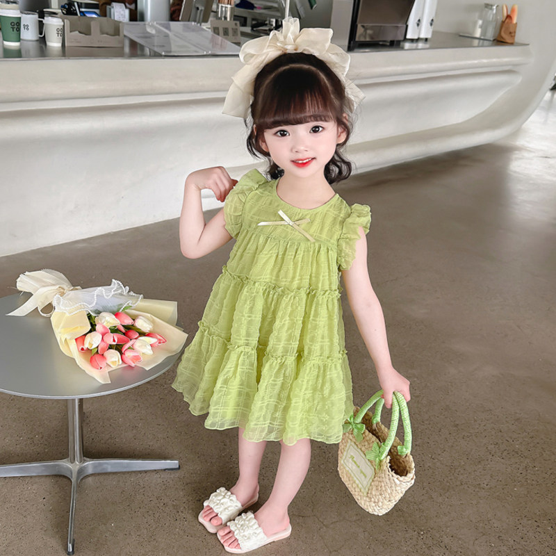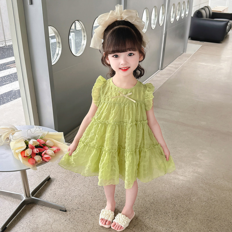 女童连衣裙夏季2025新款洋气小女孩绿色儿童夏装公主裙夏裙子夏天
