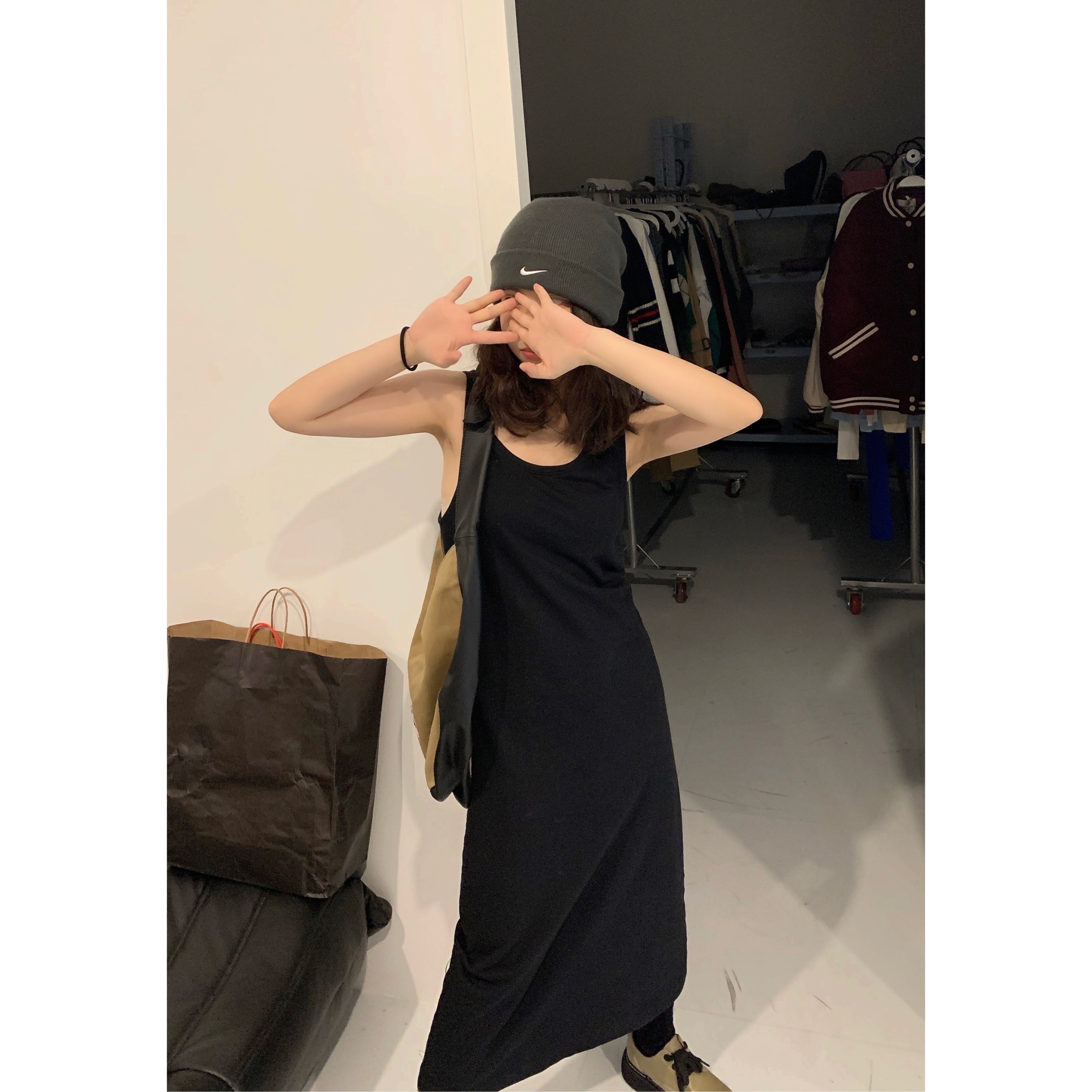背心裙任何外套中长款黑色显瘦