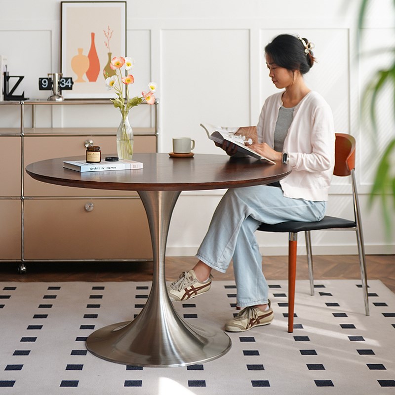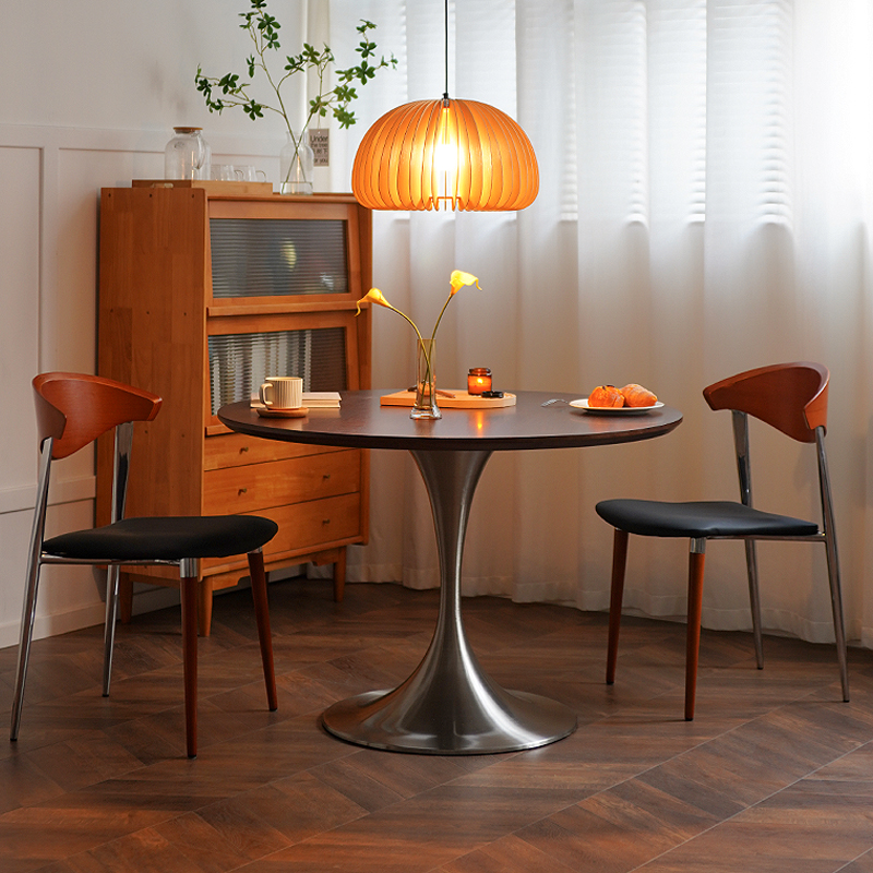 北欧郁金香圆桌家用小户型吃饭桌现代简约复古实木圆形餐桌椅组合
