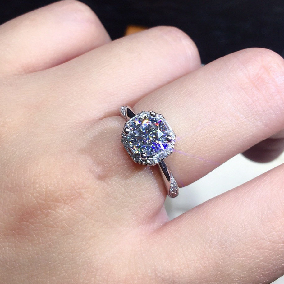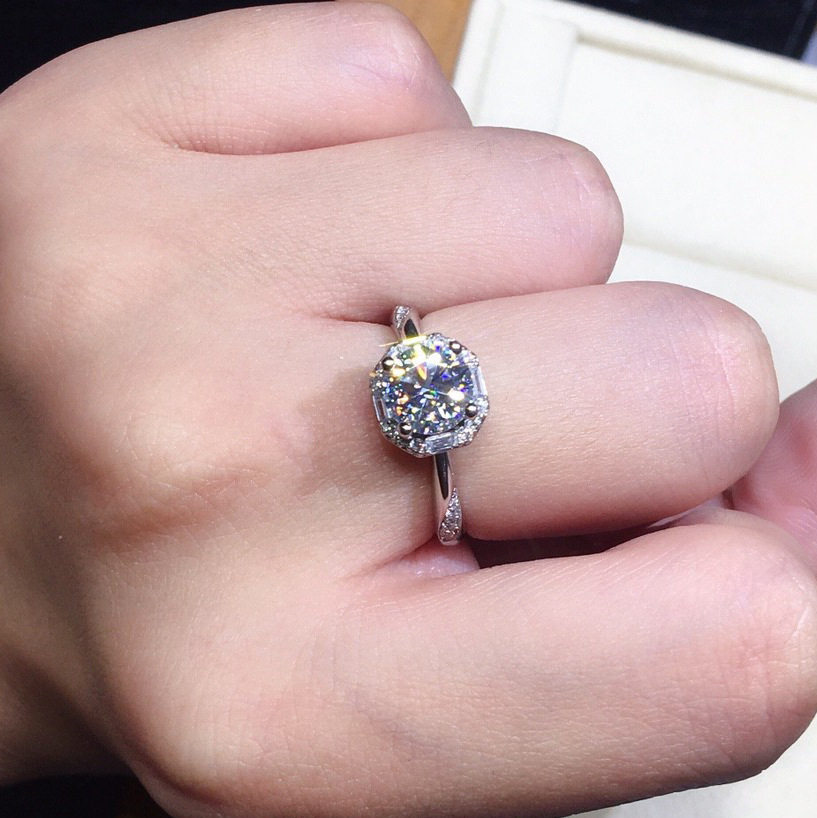 女朋友订婚结婚钻戒1克拉八心八箭仿真莫桑钻几何镀白金甜美戒指
