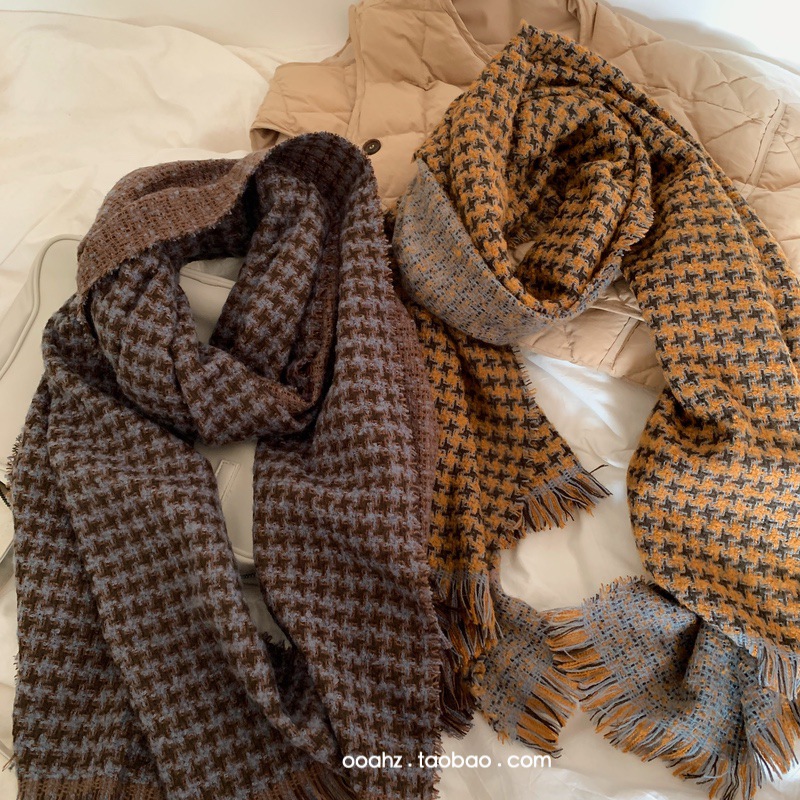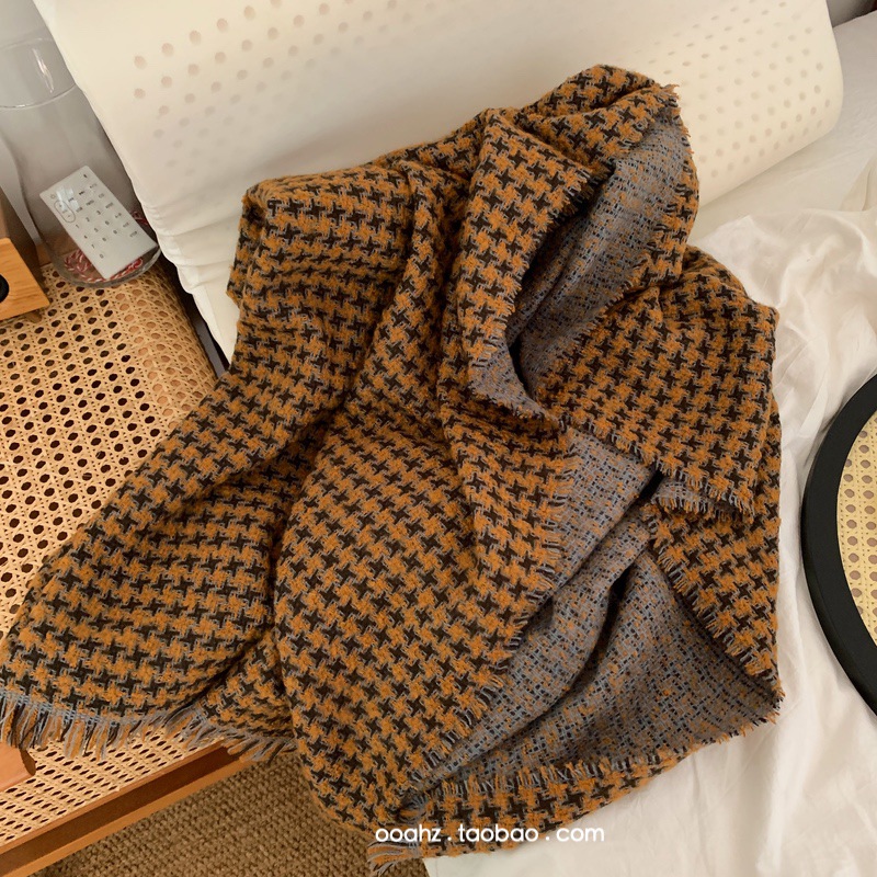 蜜汁焦糖巨百搭款~新款千鸟格纹围巾仿羊绒披肩加厚围脖韩国情侣