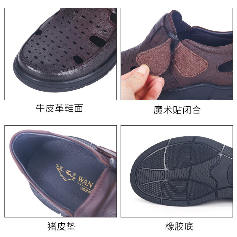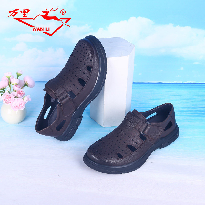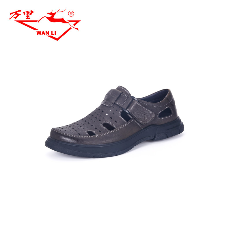 万里舒适凉鞋真皮透气平底镂空夏季男鞋魔术贴休闲男鞋HGT3116