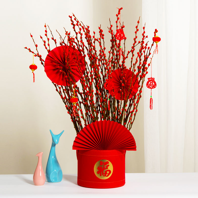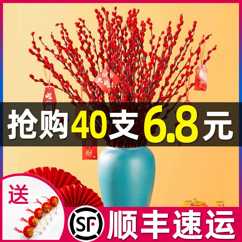 银柳真花鲜枝新年宵花卉盆栽红色干花福桶室内绿植物喜庆腊梅鲜花
