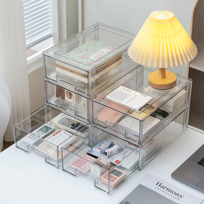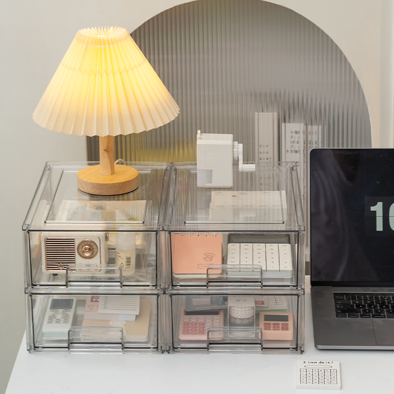 透明抽屉式收纳盒桌面叠加化妆品杂物收纳盒办公室文具多层置物架