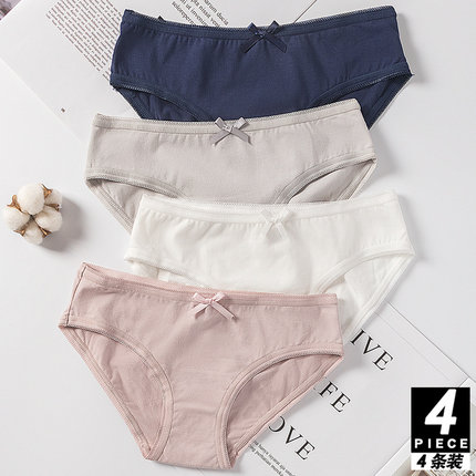 4条装纯棉低腰内裤女士全棉质纯色透气日系少女蝴蝶结三角裤头