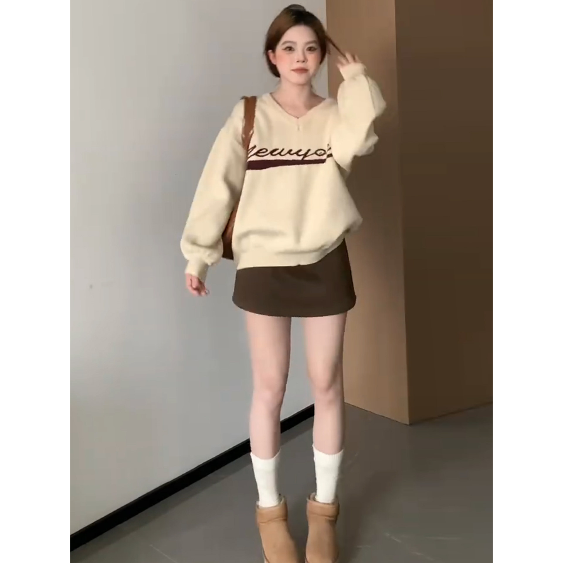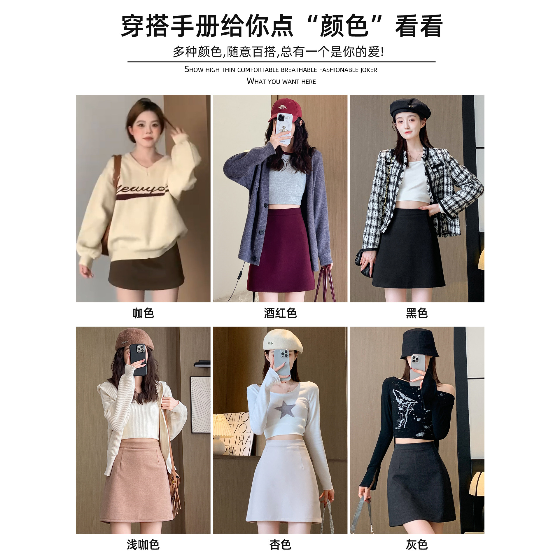 韩系咖色毛呢半身裙女秋20