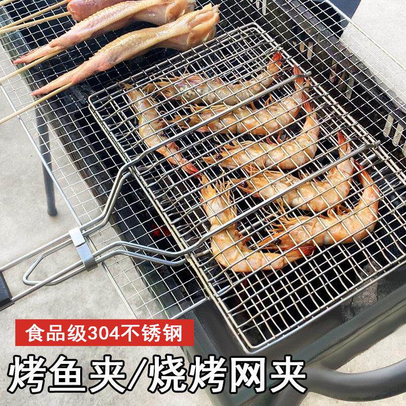 烧烤用具烤鱼夹烤鱼网烤菜夹子烧烤夹板网304不锈钢烤鱼夹子户外