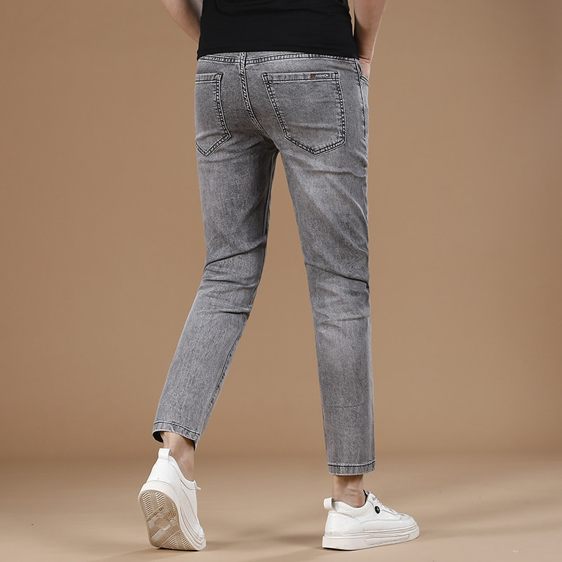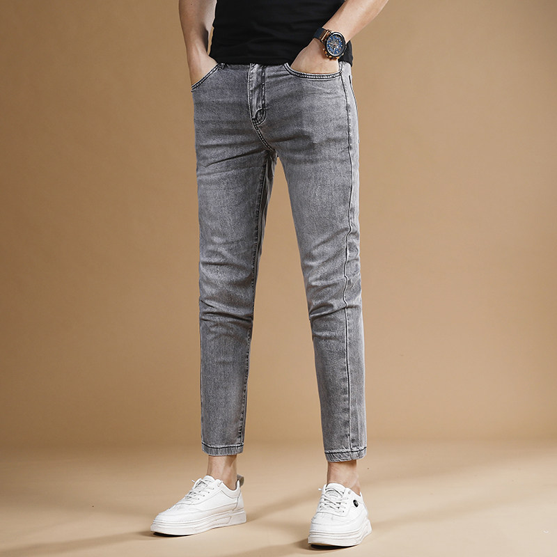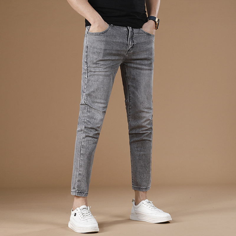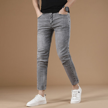 高端浅灰色九分裤男牛仔裤2026新款夏季薄款弹力修身小脚裤9分裤