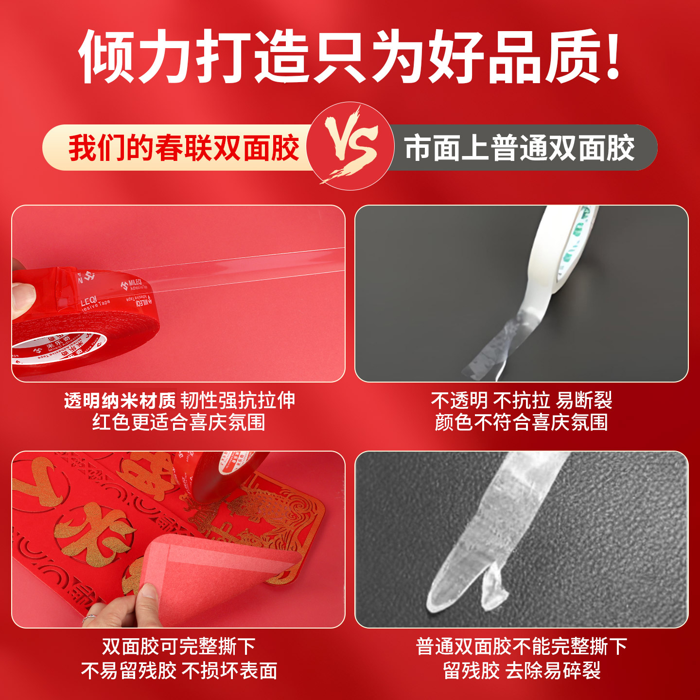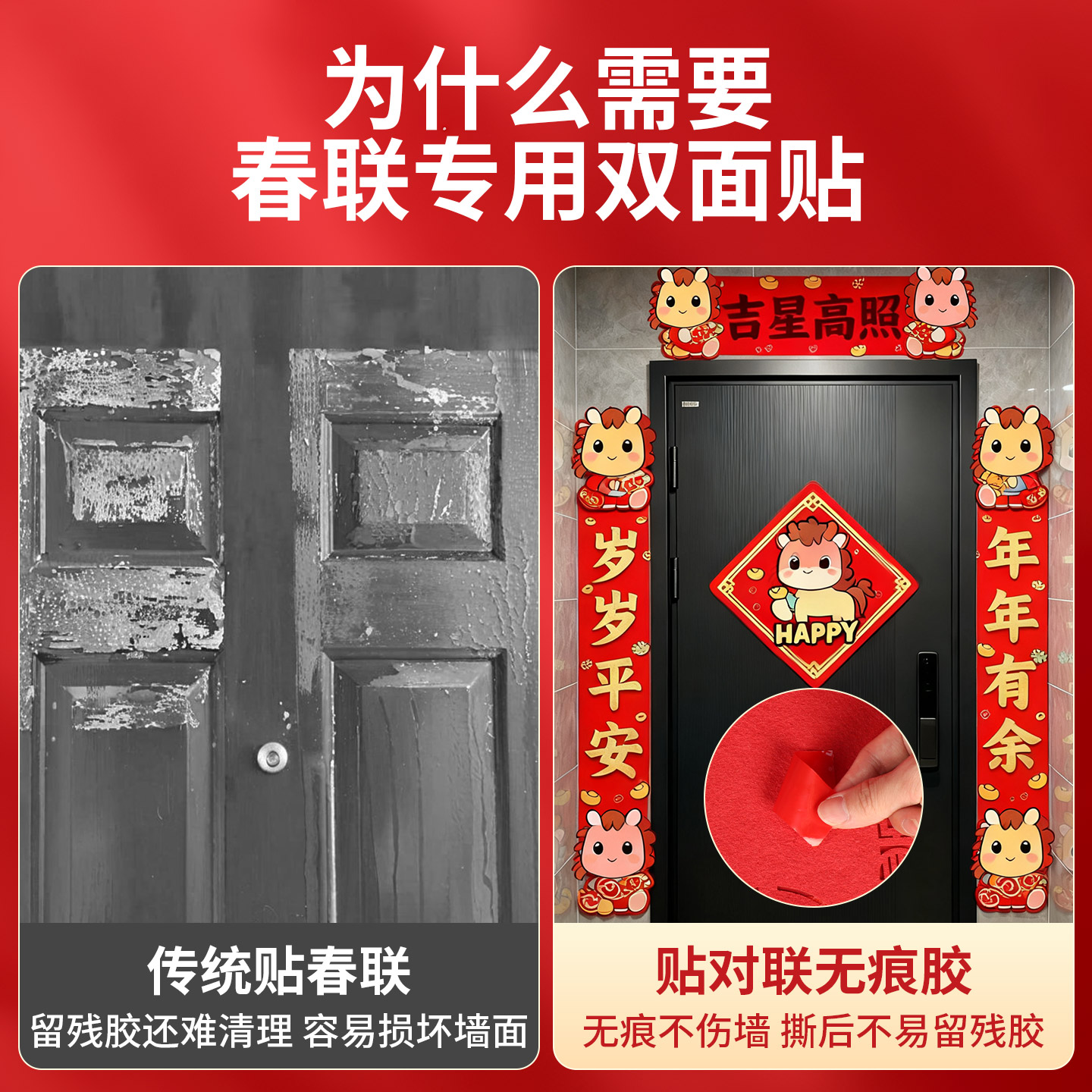 对联专用无痕贴门头装饰粘贴透明双面胶2026马年新款春联固定胶带