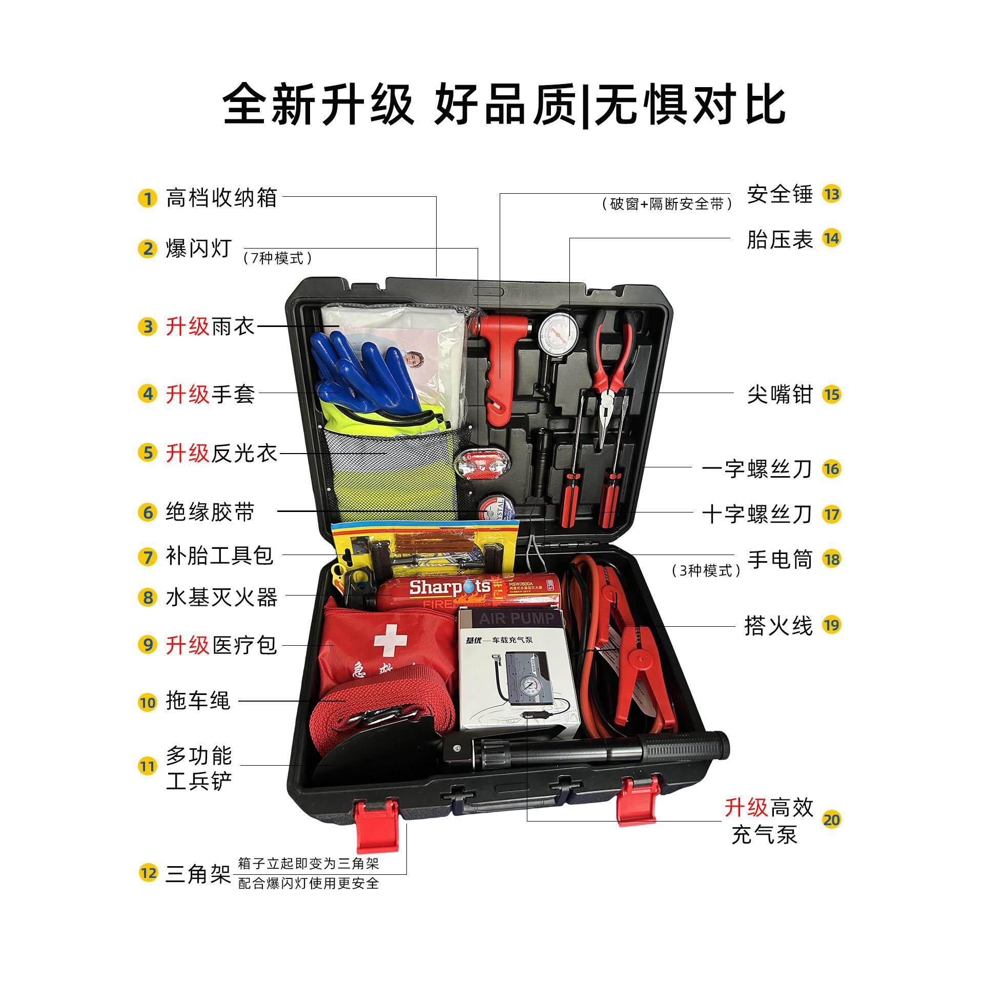 基优车载应急包汽车车辆救援工具箱补胎自驾游安全消防急救灭火器