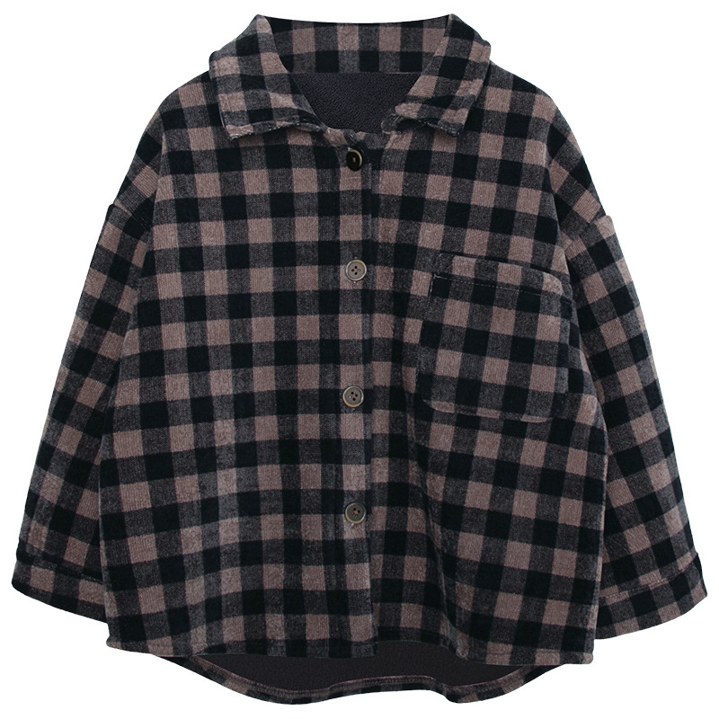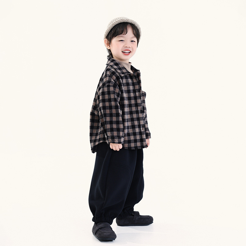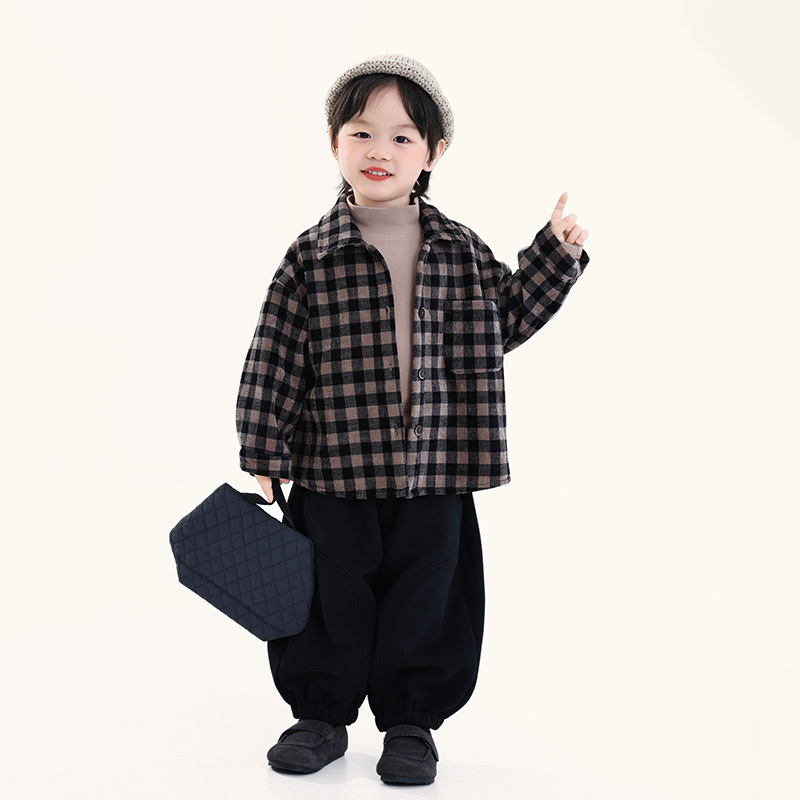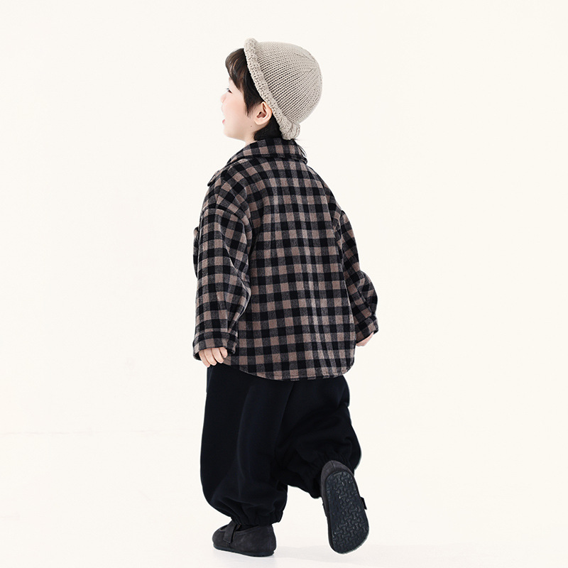 米小兔男童加绒衬衫冬季新款儿童保暖复古格子衬衣中小童加厚外套
