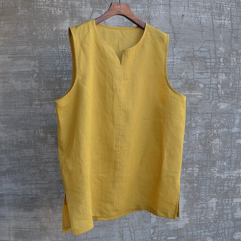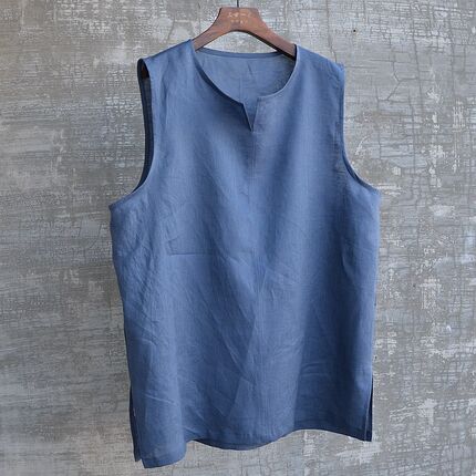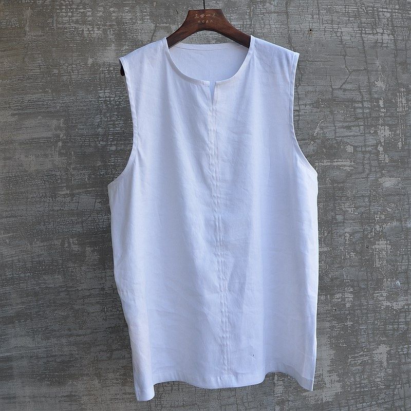 中国风男装夏季薄款无袖衬衫背心套头马甲坎袖衫百搭简约时尚流行