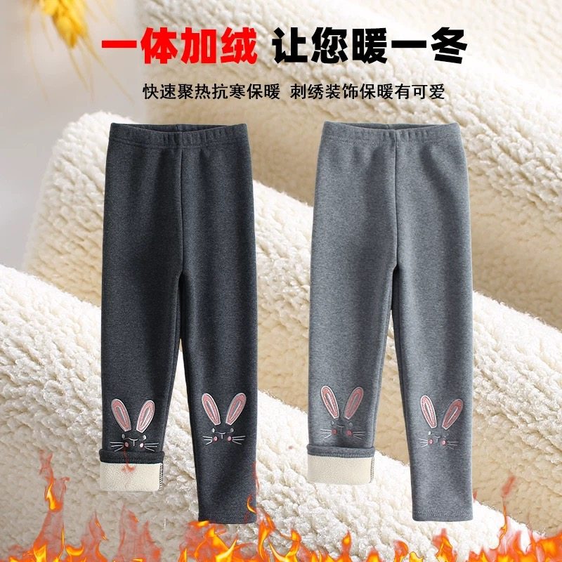 女童裤子加绒外穿一体绒冬季洋气纯棉打底裤中厚加厚女宝保暖长裤