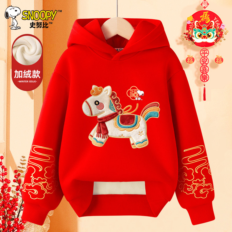 史努比男童加绒卫衣2026马年本命年加厚过年衣服男孩上衣儿童冬装