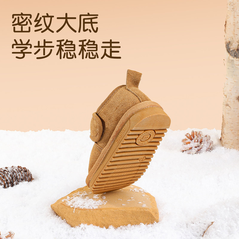 英贝米尼棉靴儿童雪地靴男宝保暖鞋加绒宝宝棉鞋学步冬季小孩靴子