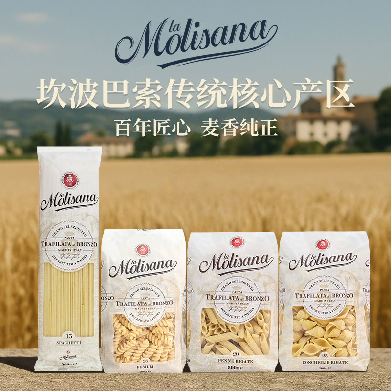 茉莉莎娜意大利面进口molisana直身粗直纹螺旋螺丝宝宝意粉儿童面