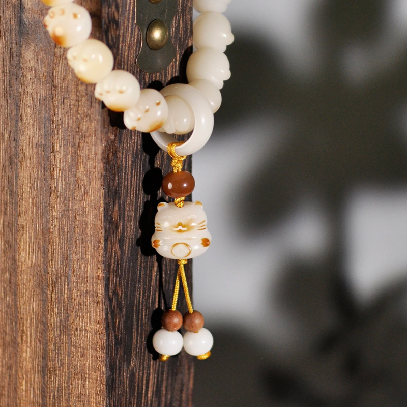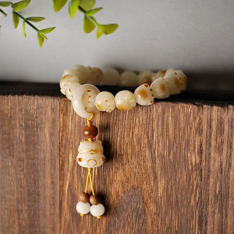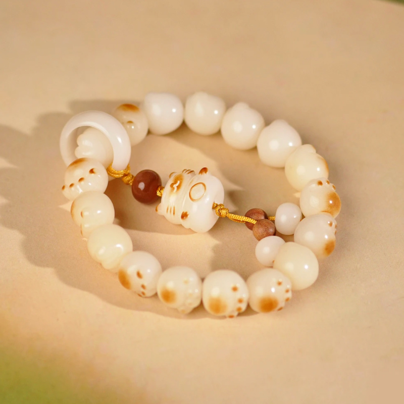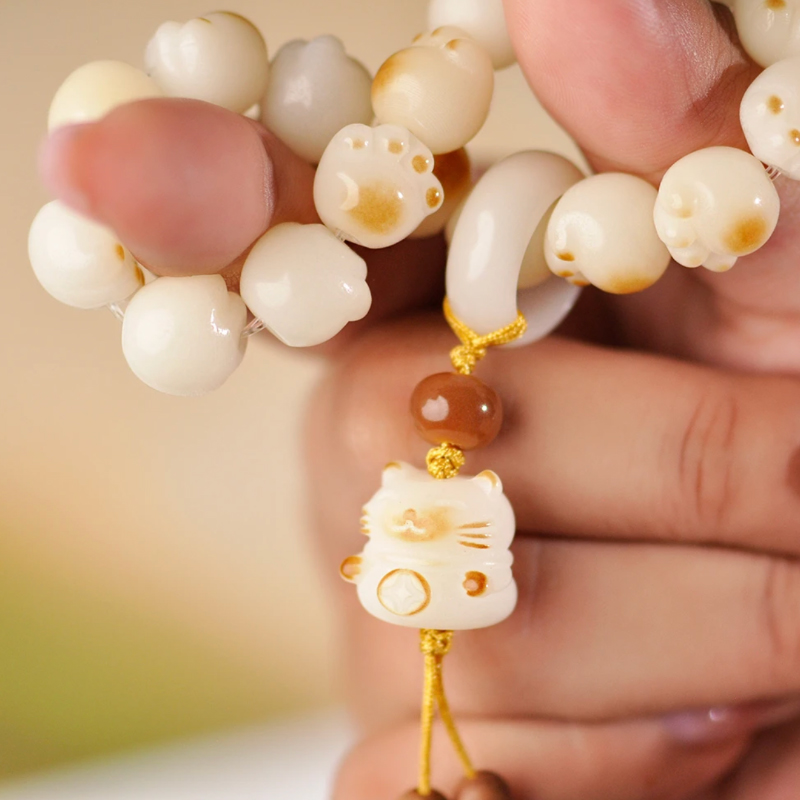纯天然白玉菩提根手串炭烤猫爪佛珠念珠文玩盘玩收藏男女同款手链