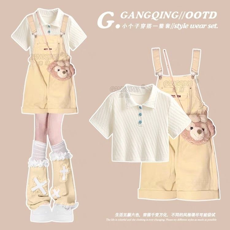 女童夏装套装2025新款女孩短袖T恤中大童休闲牛仔短裤两件套