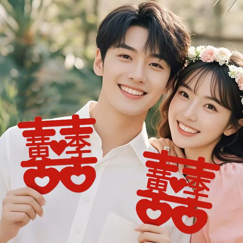 姓氏喜字定制结婚旅拍订婚领证拍照手持道具窗贴门贴婚房装饰布置