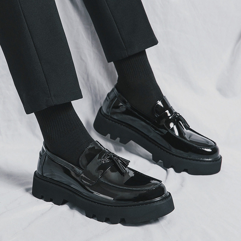 男鞋复古套脚男士商务正装休闲流苏皮鞋夏季新款一脚蹬厚底乐福鞋