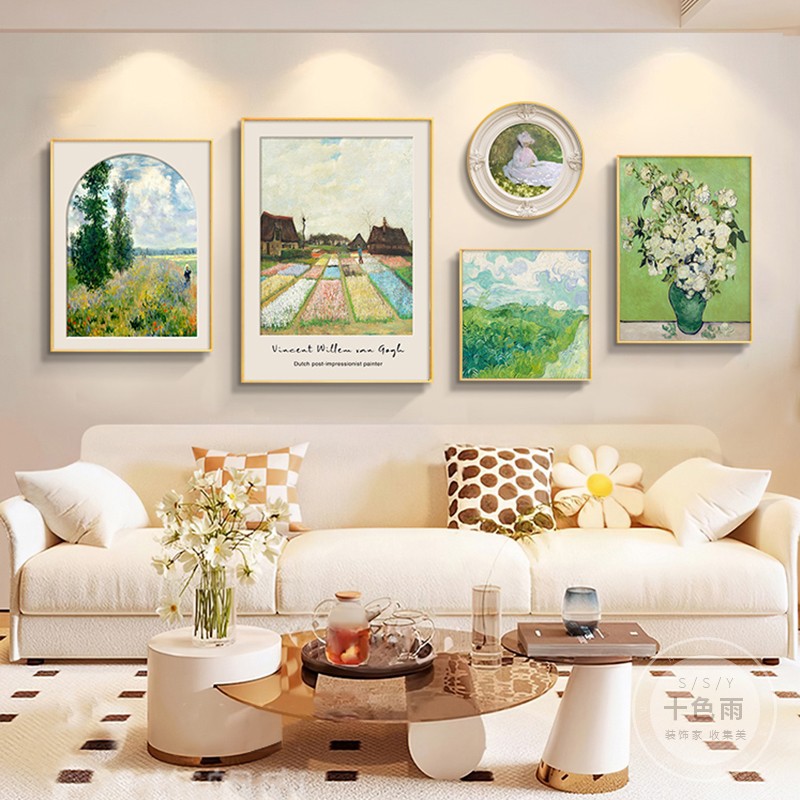 法式奶油风客厅装饰画 画风景油画 画沙发背景墙挂画 画轻奢高级