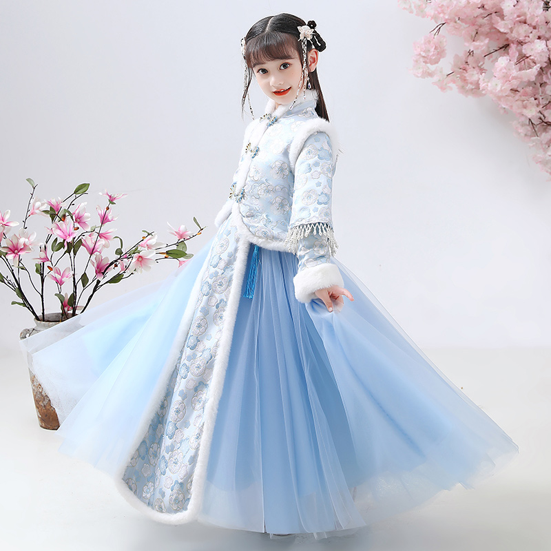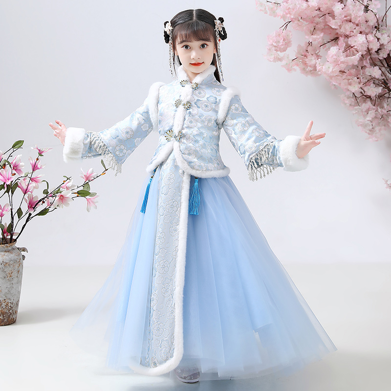 汉服女童儿童唐装中国风旗袍宝宝礼服裙小女孩洋气长袖加厚秋冬款