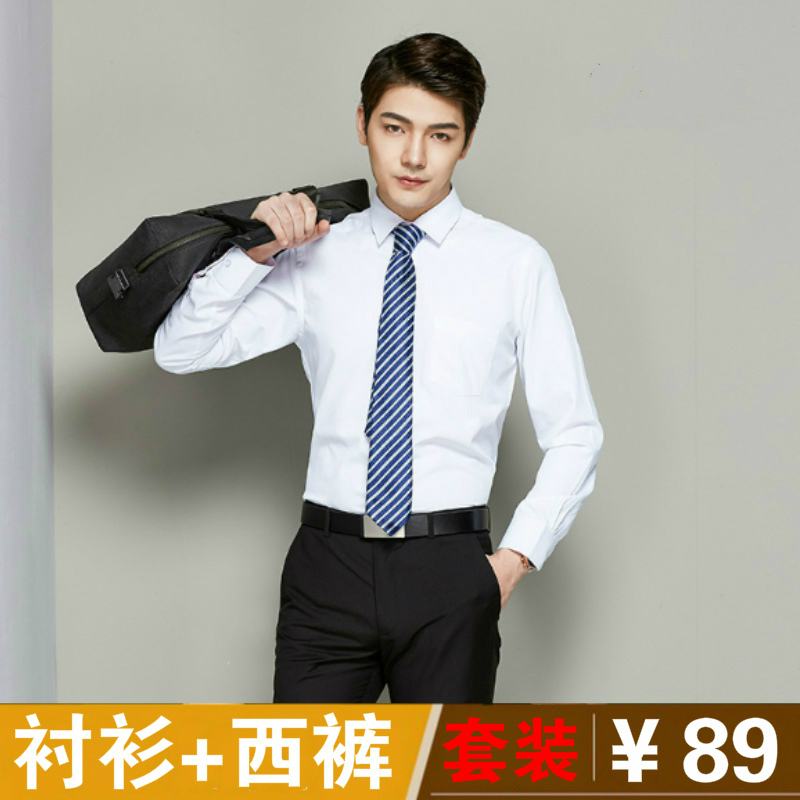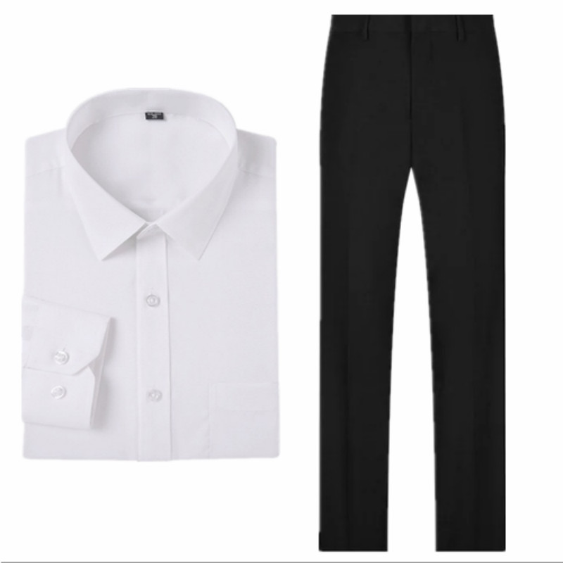 长袖白衬衫加西裤男套装结婚伴郎修身衬衣工装毕业照正装商务简约