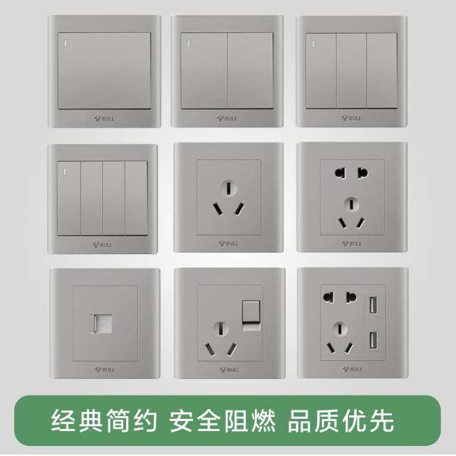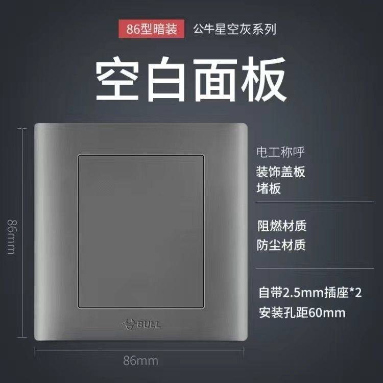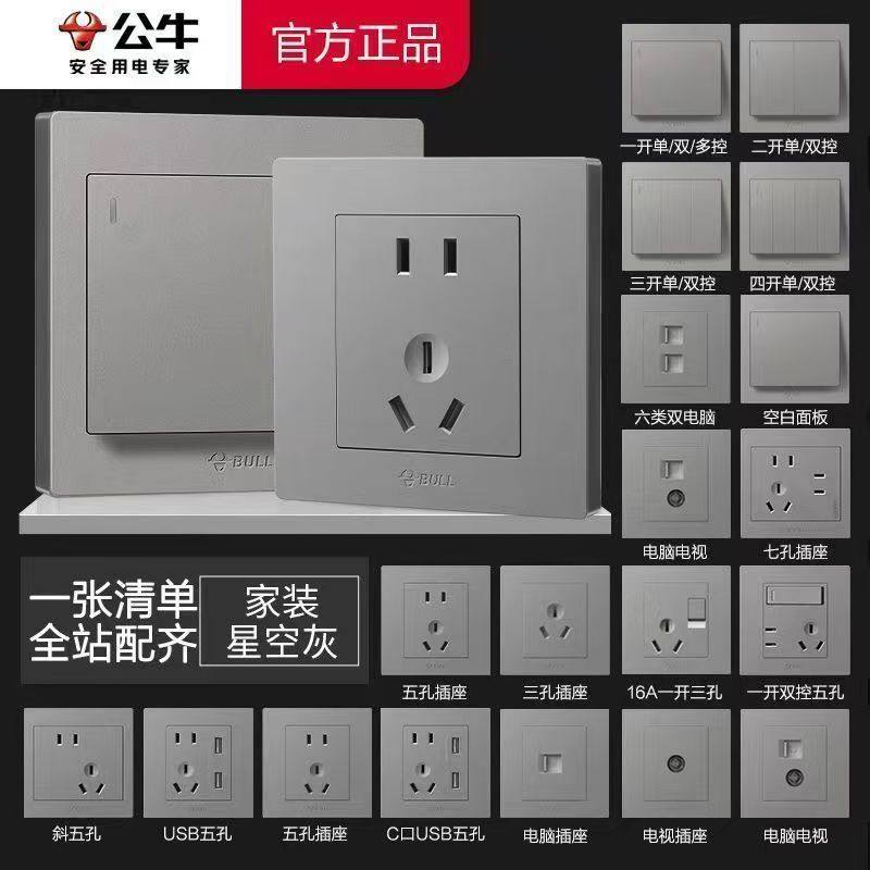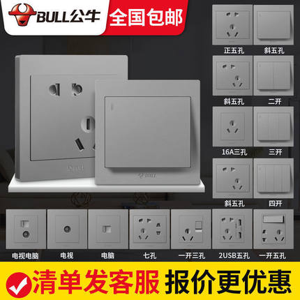 特价G32灰色公牛开关插座面板86型暗装10A五孔插座带开关一开五孔