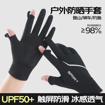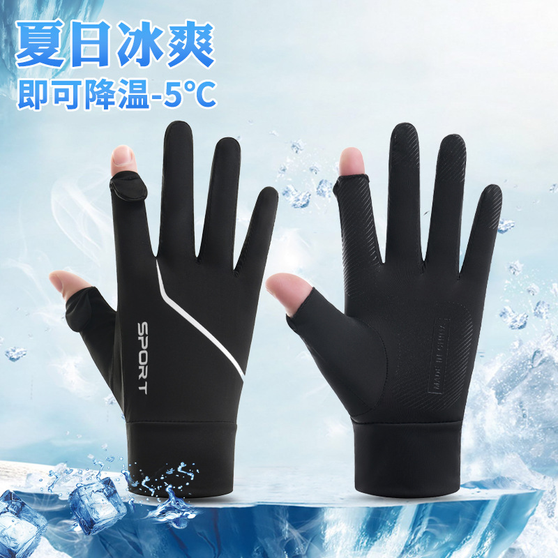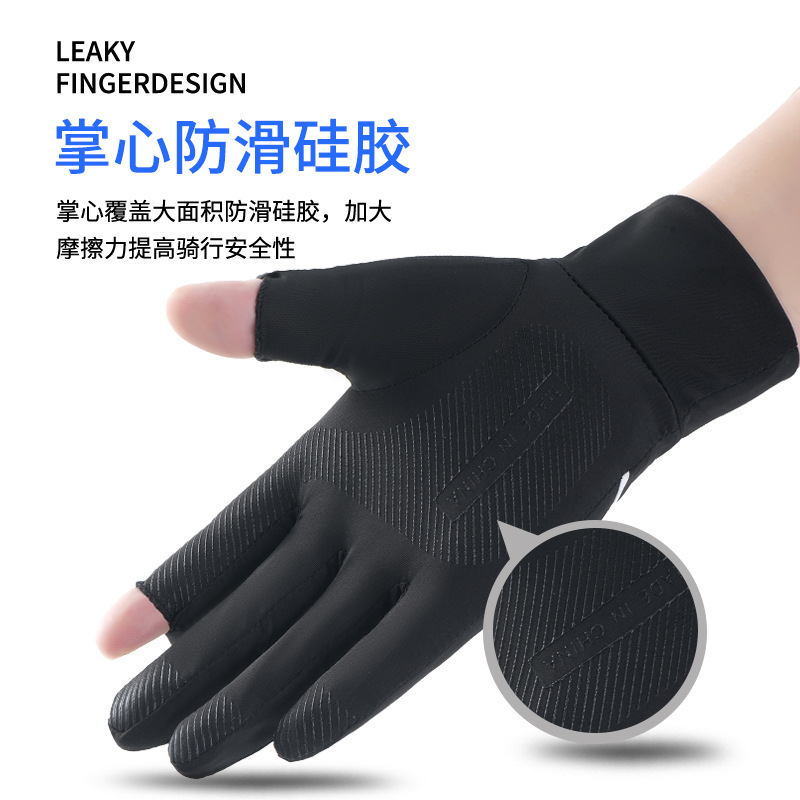 开车防滑触屏防晒手套男女款夏季冰丝袖骑行户外路亚钓鱼半指手套