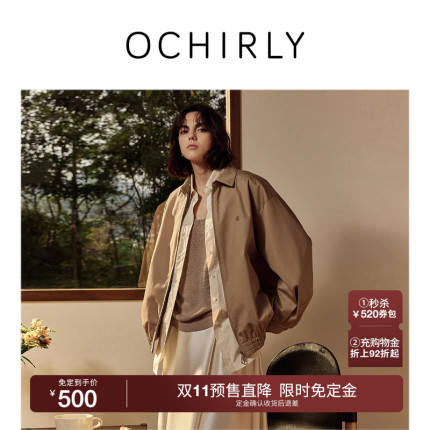 OCHIRLY欧时力 饰牌宽松风衣夹克外套女气质卡其色流行秋冬尖货