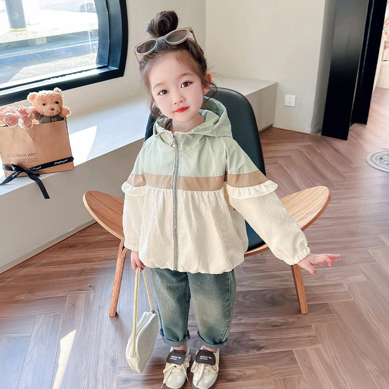 女童春装外套韩版2026新款春季儿童风衣夹克女宝宝连帽冲锋衣洋气