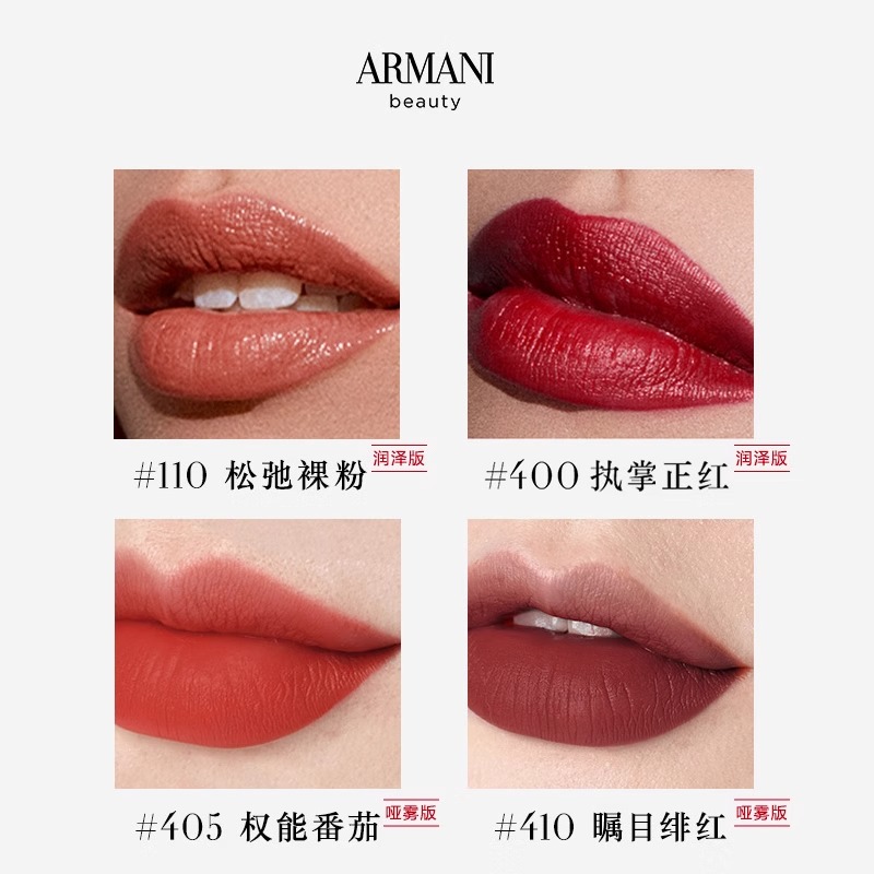 阿玛尼权力唇膏红黑管405番茄润泽哑雾214口红唇釉持久显色