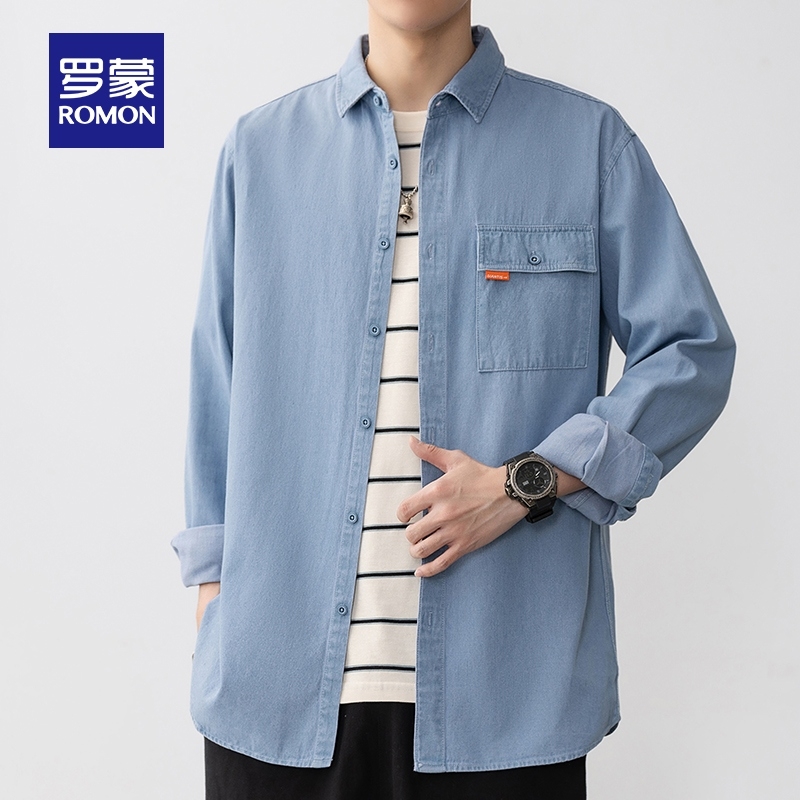 【含亚麻】罗蒙男士宽松长袖衬衫2025秋季新款纯色百搭潮流衬衣男