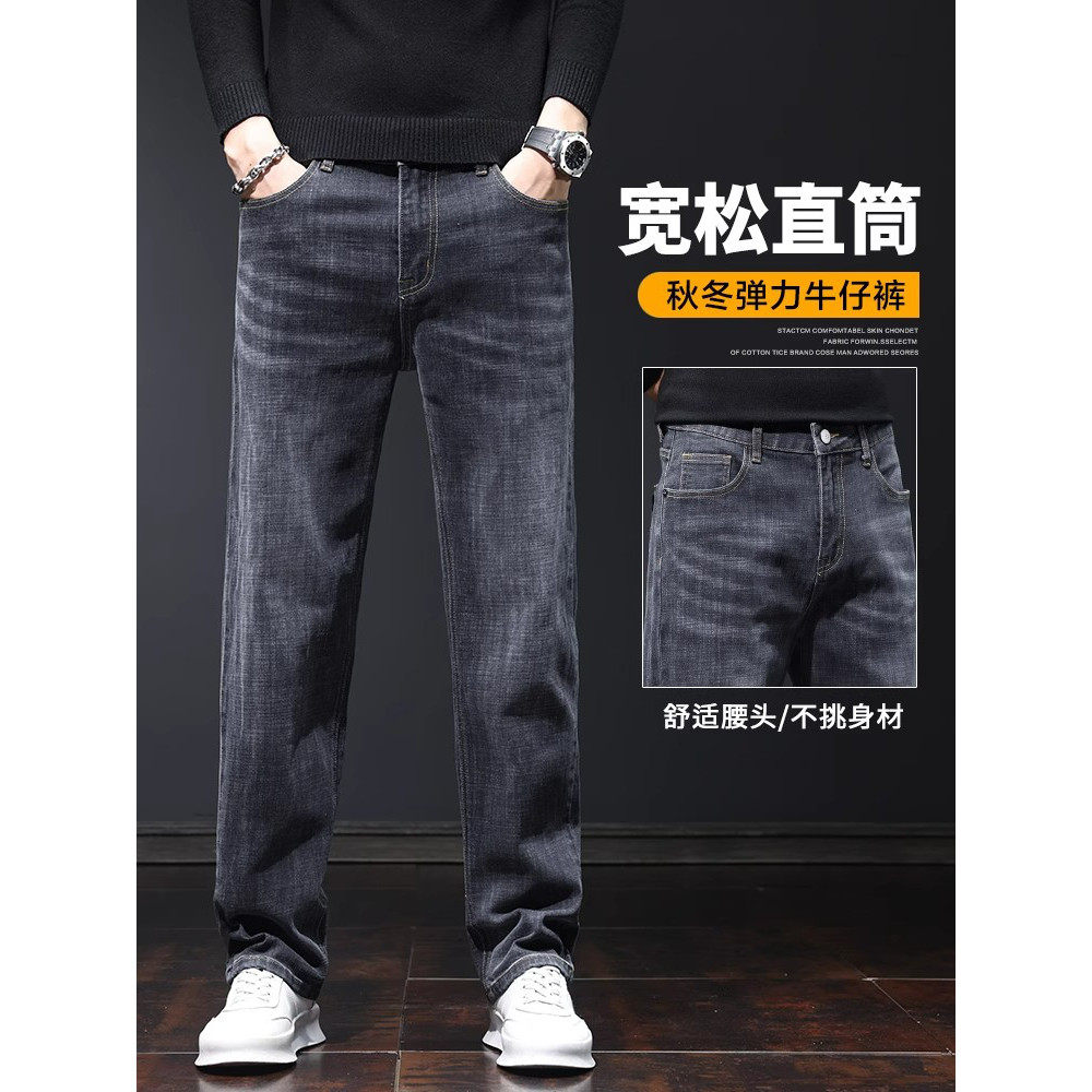 Yishion以纯官方时尚正品男士裤子直筒宽松牛仔裤男装2025秋冬加