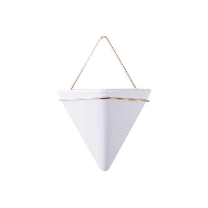 壁挂花盆北欧花瓶摆件 陶瓷创意悬挂挂式水培花盆三角形铁艺