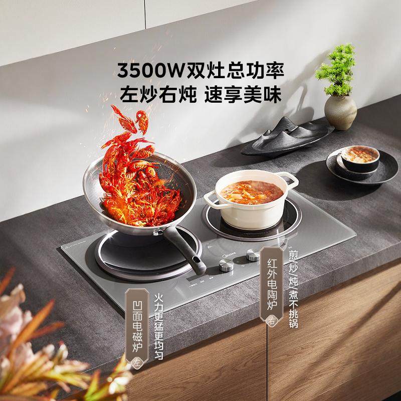 美的铂钻双灶电磁炉嵌入式家用凹面3500W大功率一平一凹2025新款