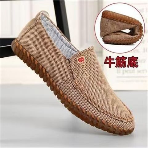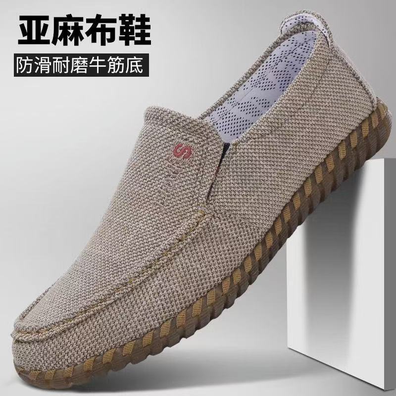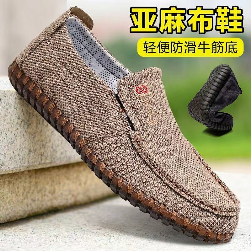 老北京布鞋男春秋透气亚麻一脚蹬软底防滑中老年休闲大码爸爸单鞋