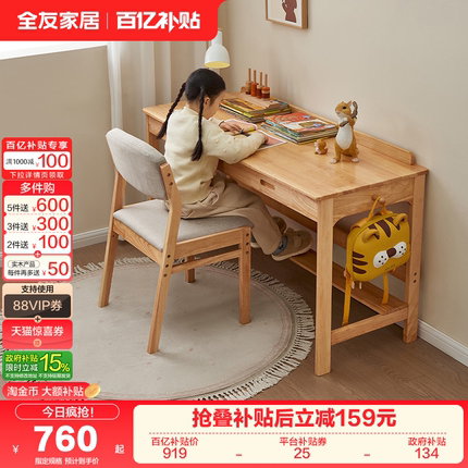 全友家居卧室客厅实木儿童书桌儿童房学生家用学习写字桌子椅子