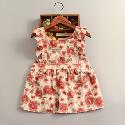 复古纯棉女宝宝罩衣无袖防水围裙