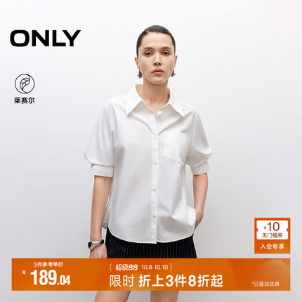 ONLY2025夏季新款纯色莱赛尔简约时尚翻领显瘦宽松正肩短袖衬衫女