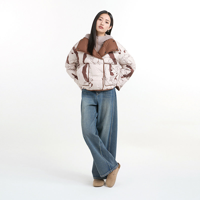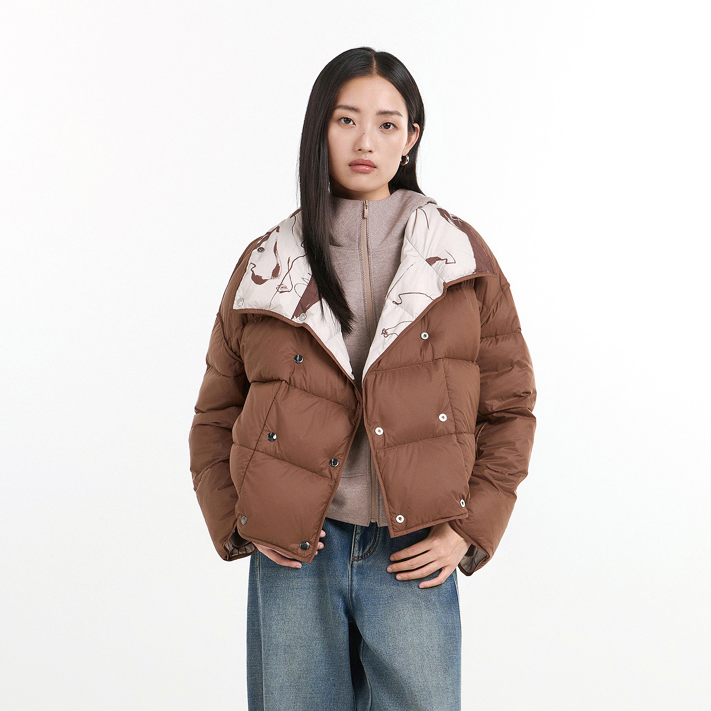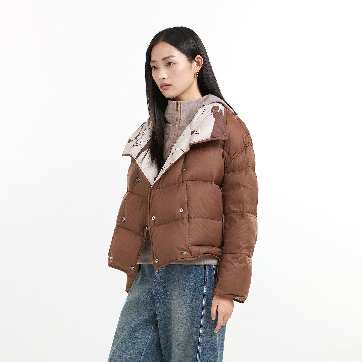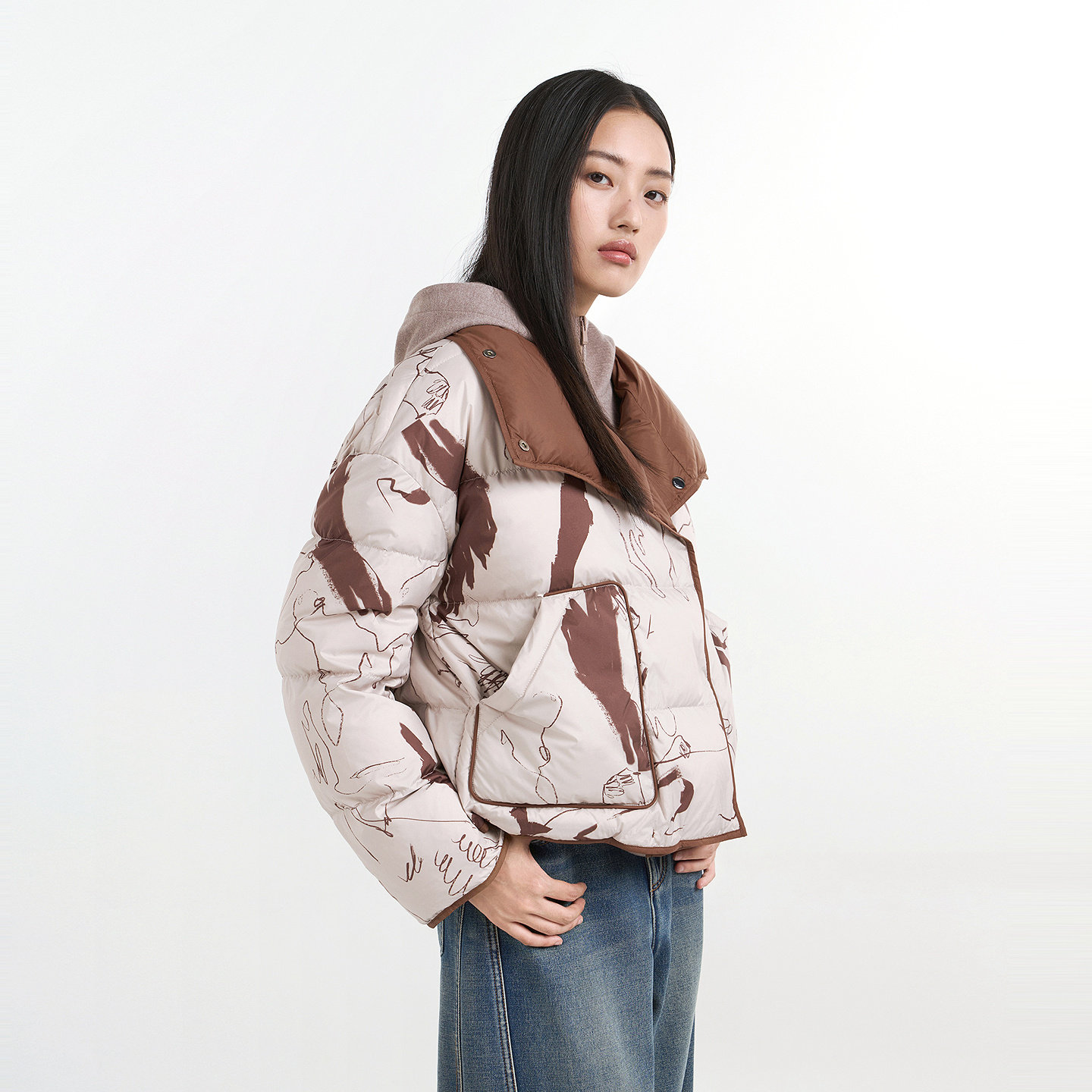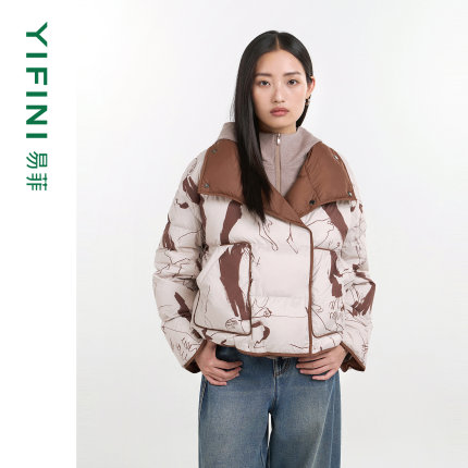 [专柜同款]Yifini/易菲原创花型气质优雅白鹅绒宽松短款羽绒服女