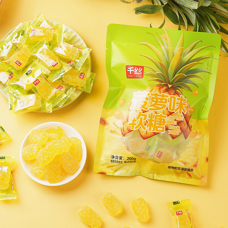 千丝菠萝味软糖袋装年货新年糖果团购批发小包装袋装乔迁新居喜糖
