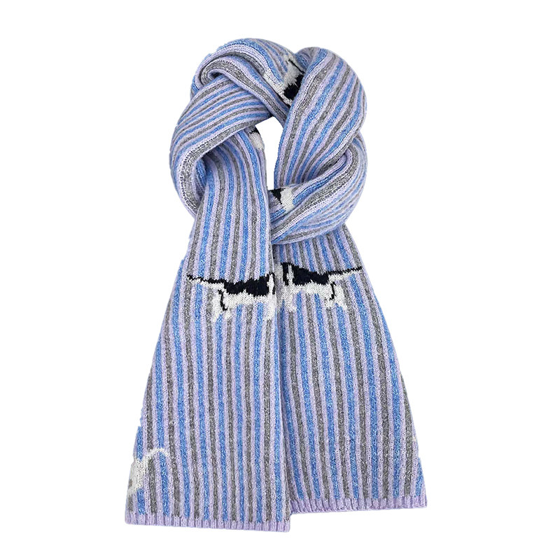 日系拼色条纹撞色针织猫咪围巾女秋冬情侣款百搭氛围感护颈小围脖