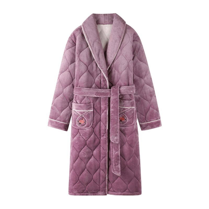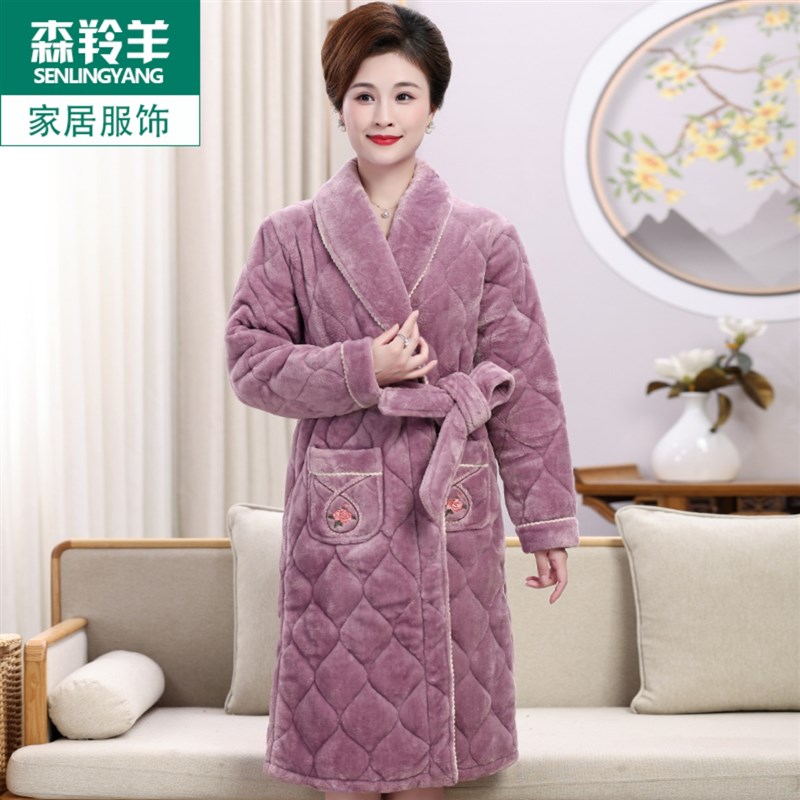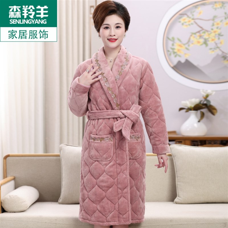 妈妈睡袍女款冬季珊瑚绒夹棉三层加厚加绒睡衣秋冬宽松款保暖浴袍