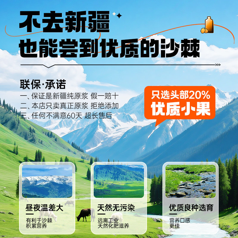 沙棘原浆官方旗舰店新疆小果正品VC鲜榨100%NFC源汁油粉