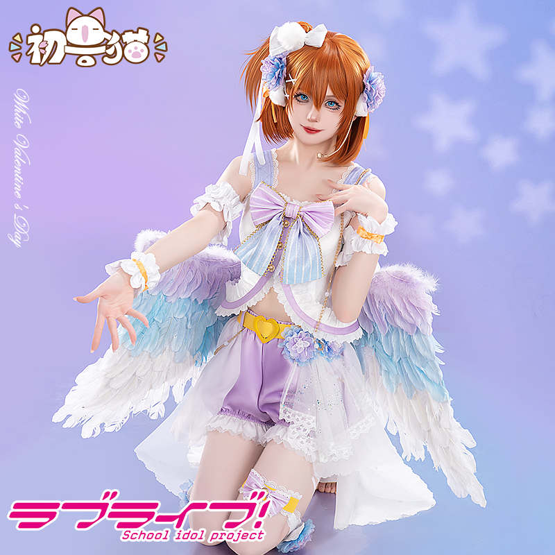 初兽猫 lovelive高坂穗乃果cos服装白色情人节天使偶像企划