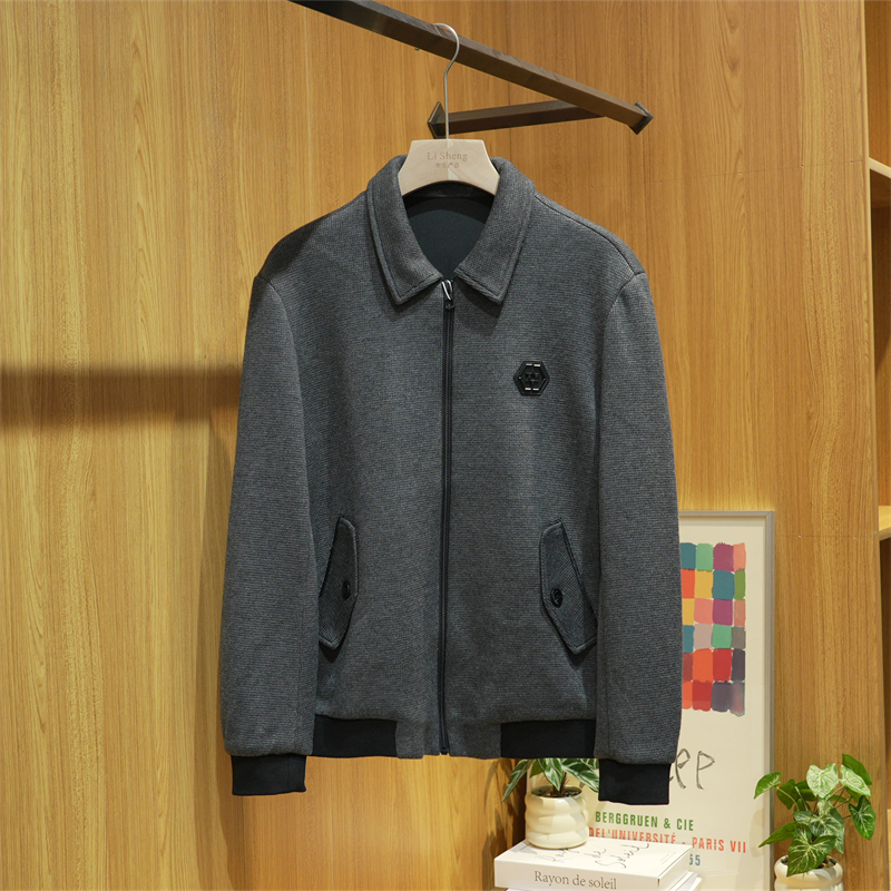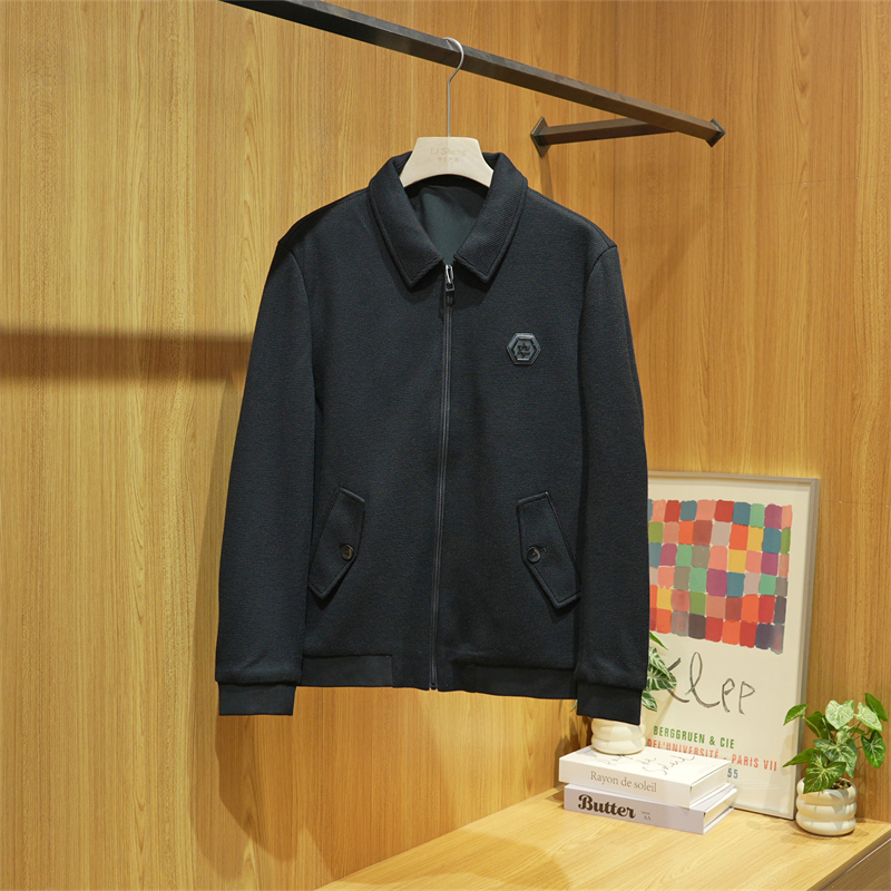 秋季男士含绵羊毛翻领针织夹克柔软舒适保暖休闲外套ZJ154-2513