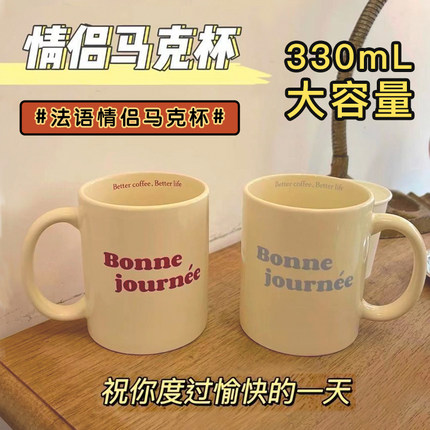 法语陶瓷马克杯少女心闺蜜杯子牛奶杯咖啡杯情侣水杯子ins高颜值