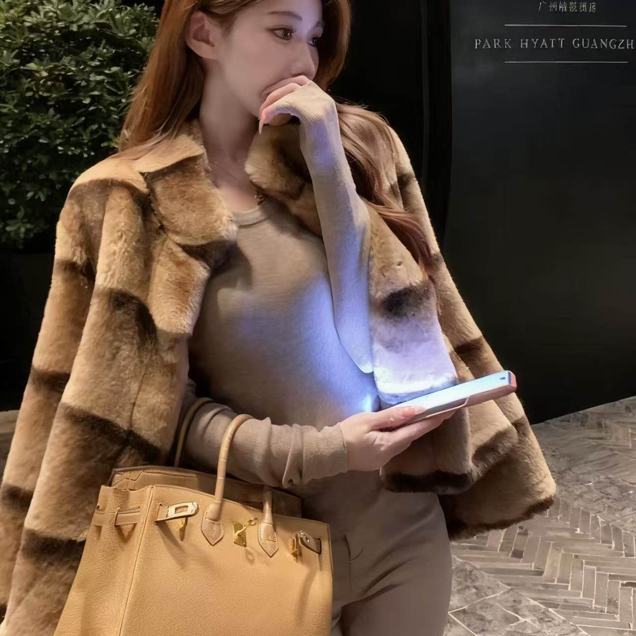 雪山晕染仿獭兔毛毛双色渐变渲染高级感宽松外套女短款立领冬季厚