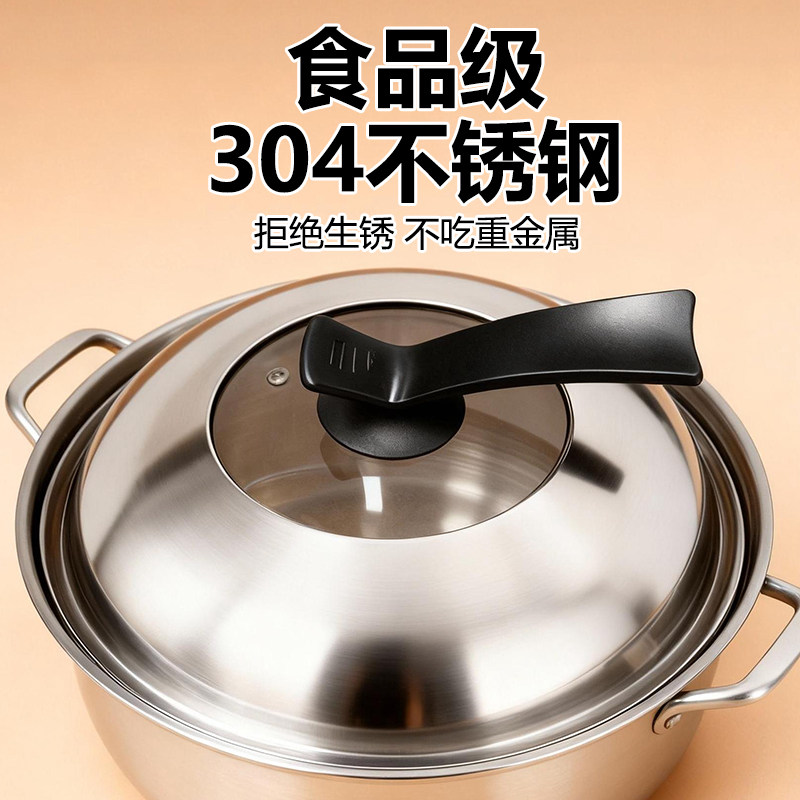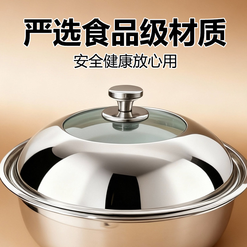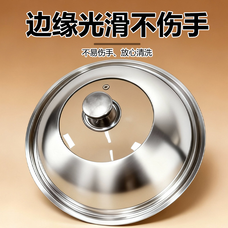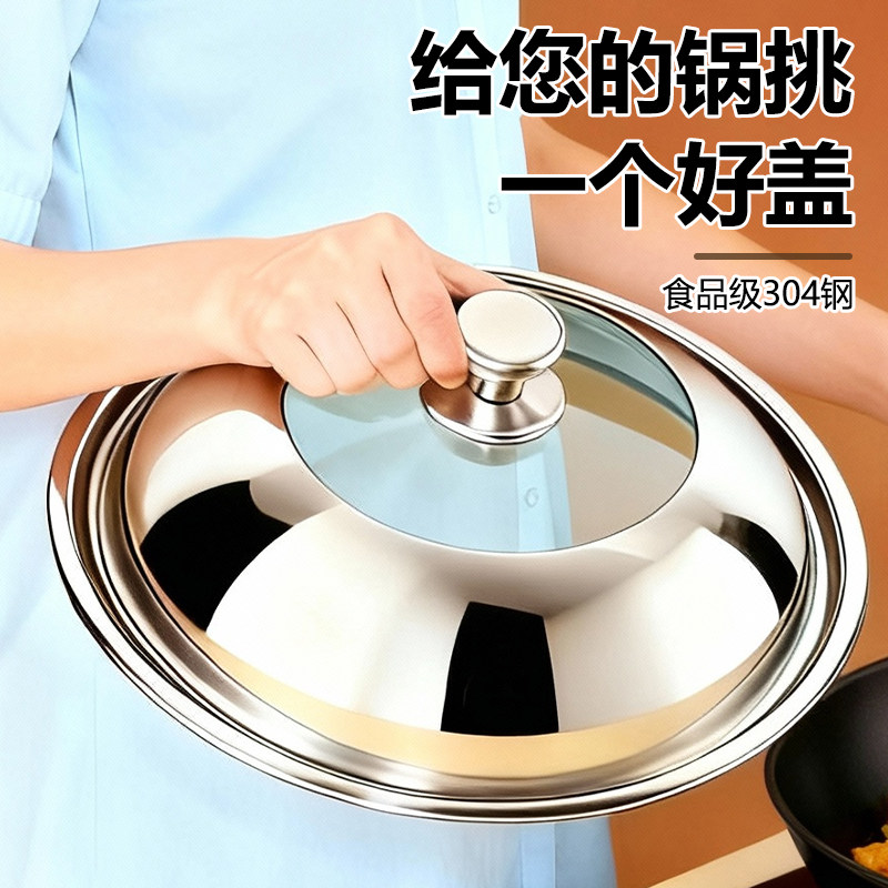 德国家用304不锈钢锅盖圆形防烫加高可视盖子通用34cm蒸锅炒菜锅